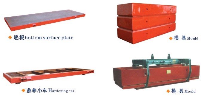模具與底板結合可盛裝料漿,靜置養護發泡固化成坯體,底板同進又承載坯體至切割機進行切割,并與蒸養小車組碼后進入蒸壓釜進行蒸養。