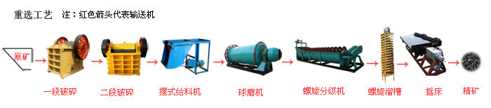 重力選礦,簡稱重選,是根據礦物密度不同而分離礦物的選礦方法。進行重選時除了要有重選設備外,還必須有介質。介質比如水和空氣等。這也是重力選礦與其它選礦工藝有所不同的地方,重選法的特點,或者說優點表現在設備結構簡單,選礦成本低,因此只要在條件適宜時均可采用重力選礦的工藝方法。